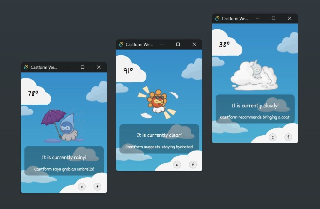 Designed and programmed a Pokemon-themed desktop weather widget, blending data with original art and interactive features.